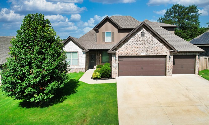 Move-in ready in a quiet Centerton subdivision! Freshly painted with wood-look tile in main living areas, LVP in bedrooms and new carpet upstairs. Spacious, open layout offers flexible living with plenty of natural light. The kitchen is centrally located with a gas cooktop, a new microwave & dishwasher, lots of storage & a pantry. The split floor plan on lower level has 3 of 5 bedrooms & 2 full bathrooms while the upstairs accommodates 2 bedrooms & a full bath. The primary suite is spacious and conveniently located off laundry room. The 3-car garage includes a walk-in storm shelter for added safety and drop zone/mudroom for as you walk inside. Enjoy the outdoors from the covered back patio overlooking a fully fenced yard with 2 cherry trees, a dogwood tree, a maple tree and a storage shed. Located just minutes from schools, parks, & XNA national airport, and 7 miles from downtown Bentonville this home combines comfort, convenience, and peace of mind in a prime location! NO HOA FEES! Ask for Feature Sheet.